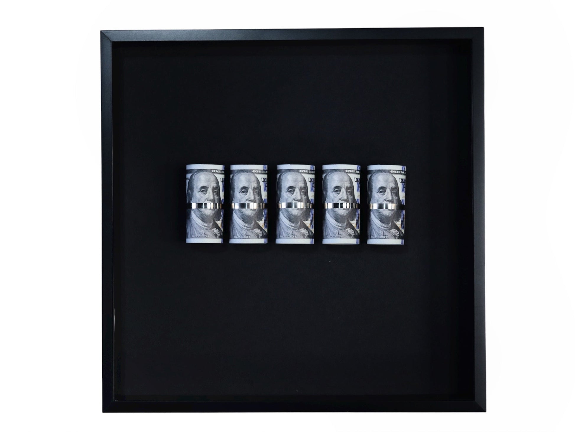 Inside the Frame: Replica banknotes, sealed behind glass, includes authenticity certificate.