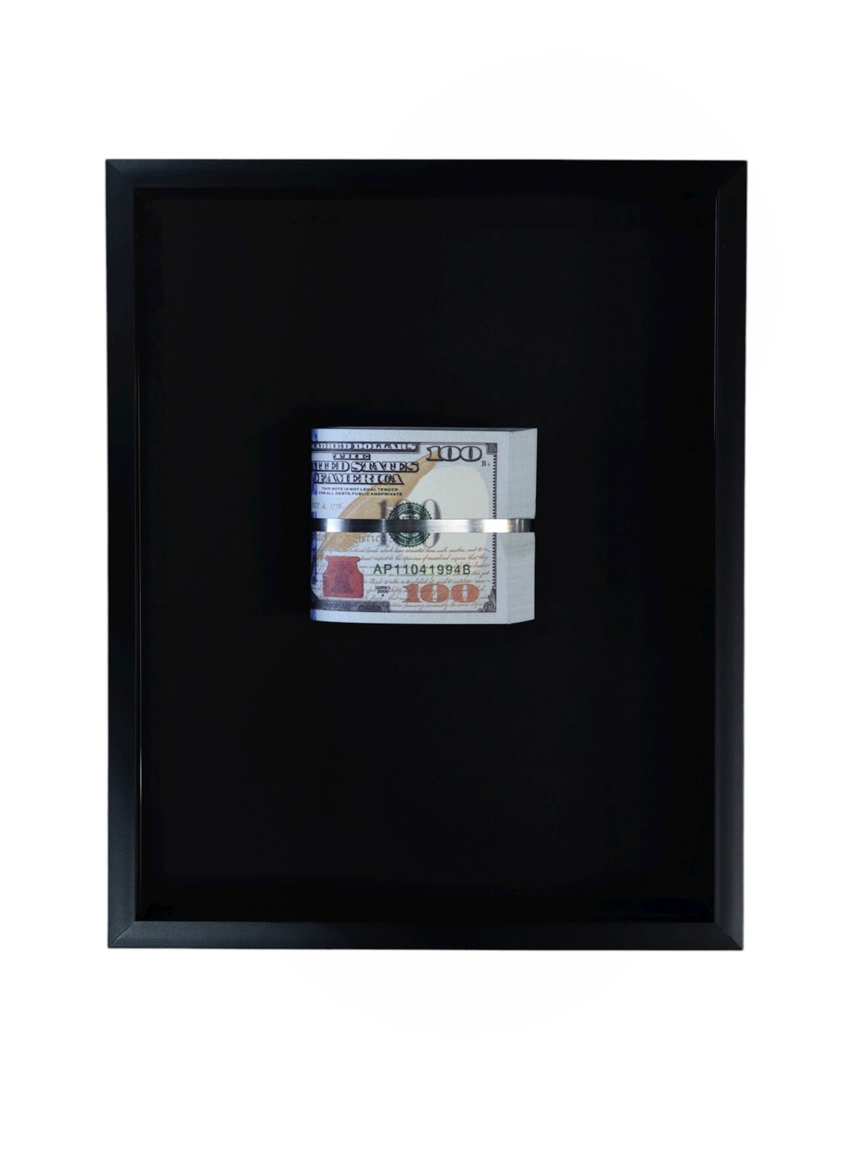 Elevate your motivation with Stack Fold, a handcrafted piece featuring a folded stack of $100 bills elegantly framed.